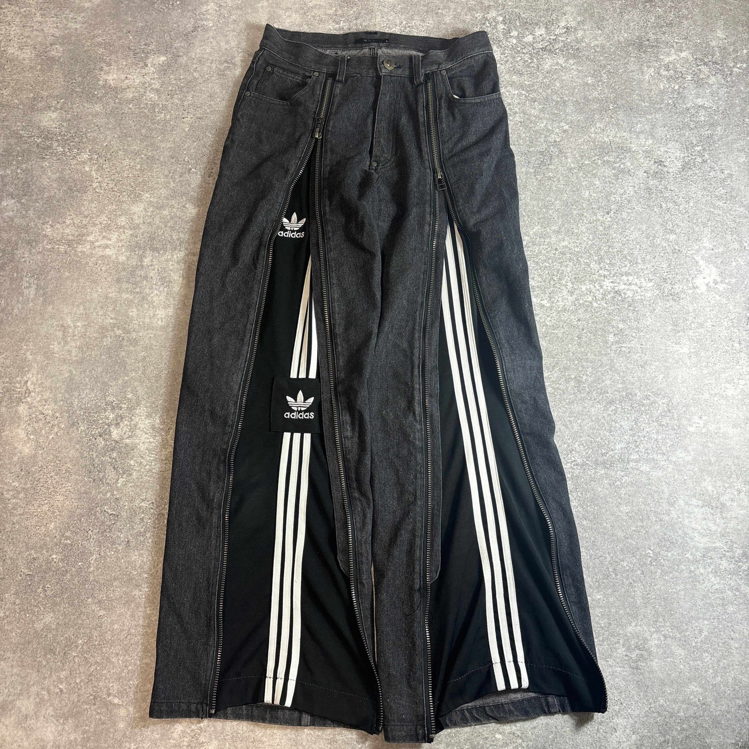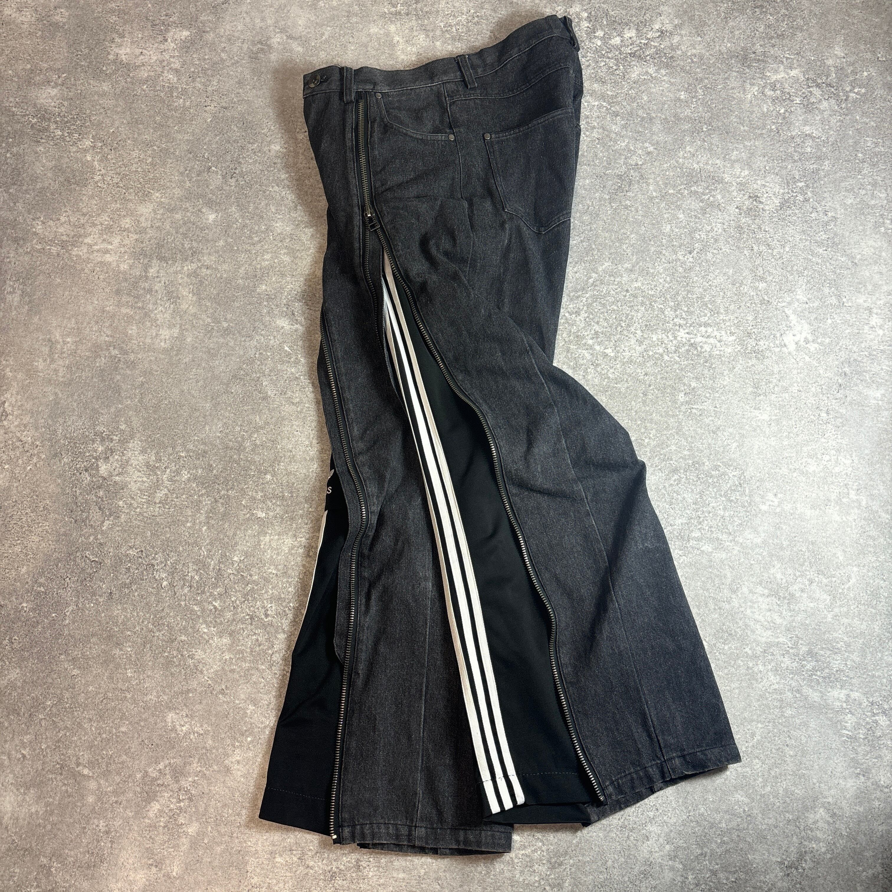 デニムパンツにジャージを大胆にドッキングした、リメイクの一点モノワイドパンツです。