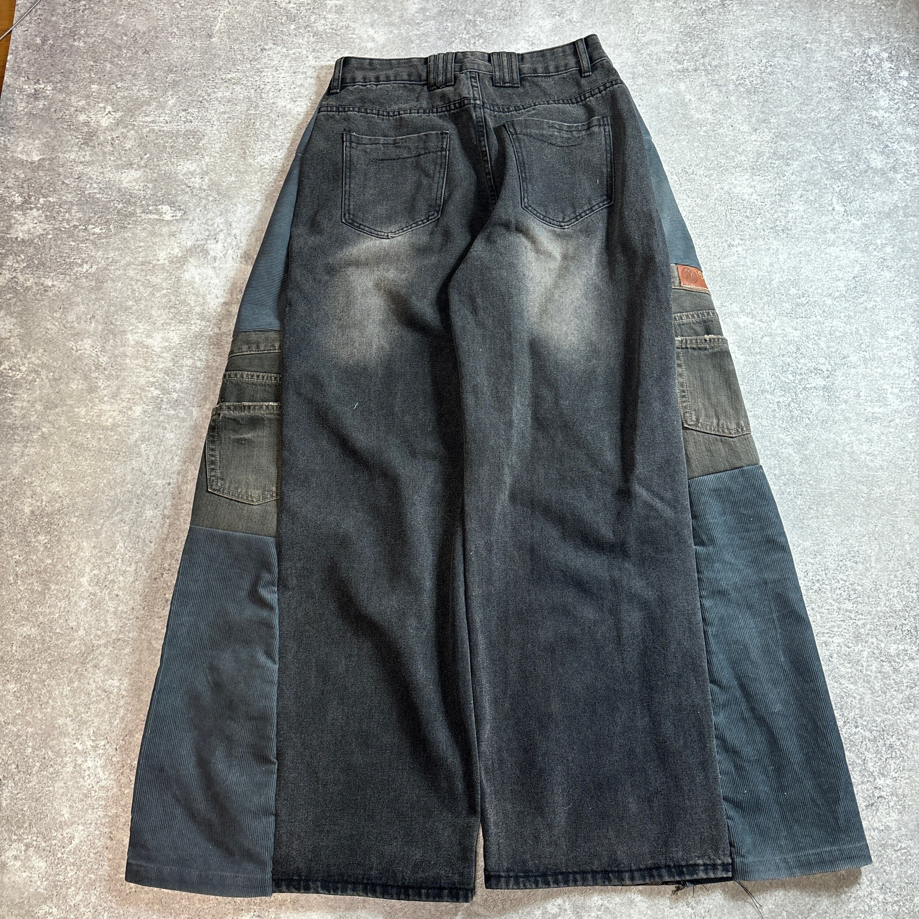 レオパード切替 デニムパンツ 再構築 ワイド フレア ブラック