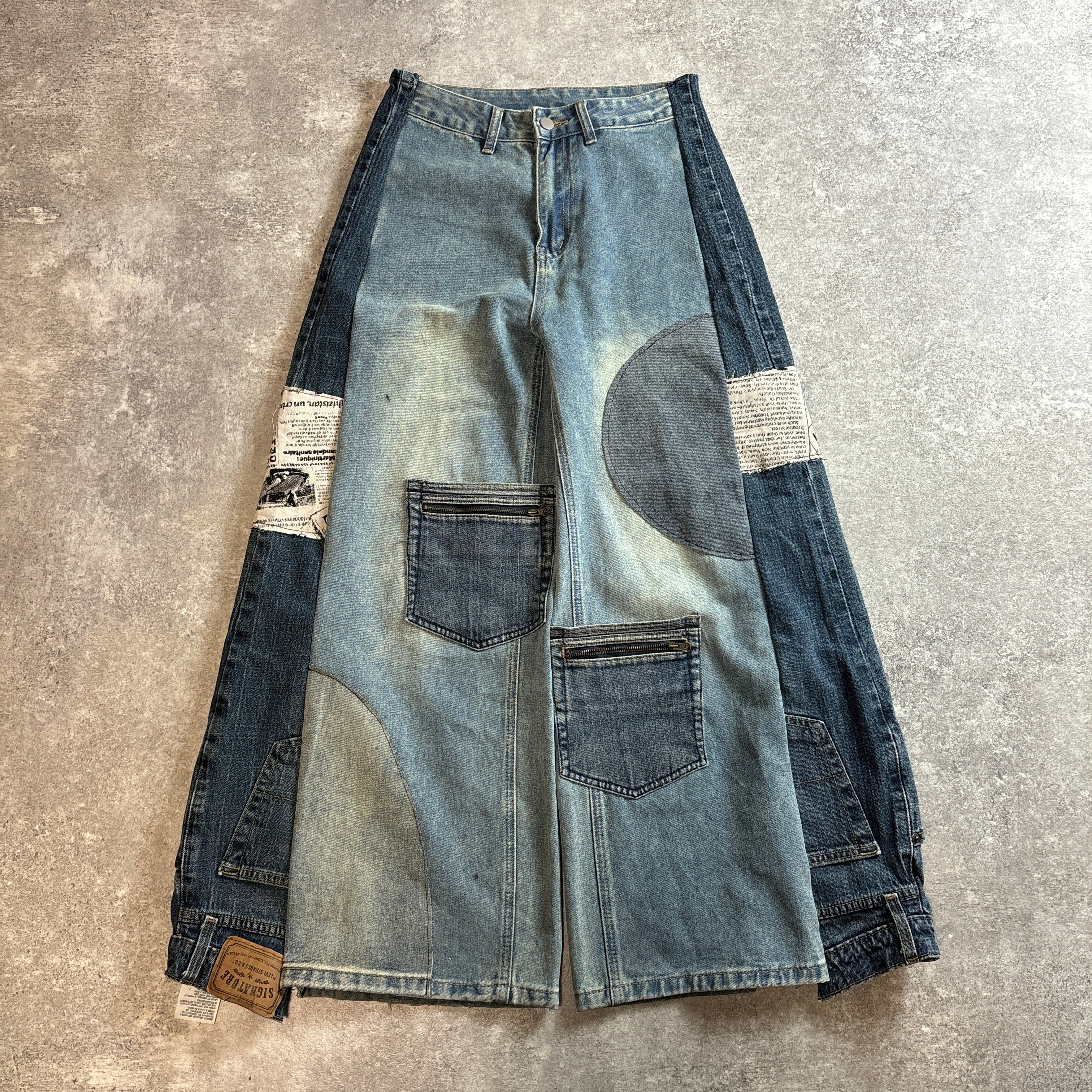 リメイクデニムパンツ ワイド 再構築 ニュースペーパー 古着