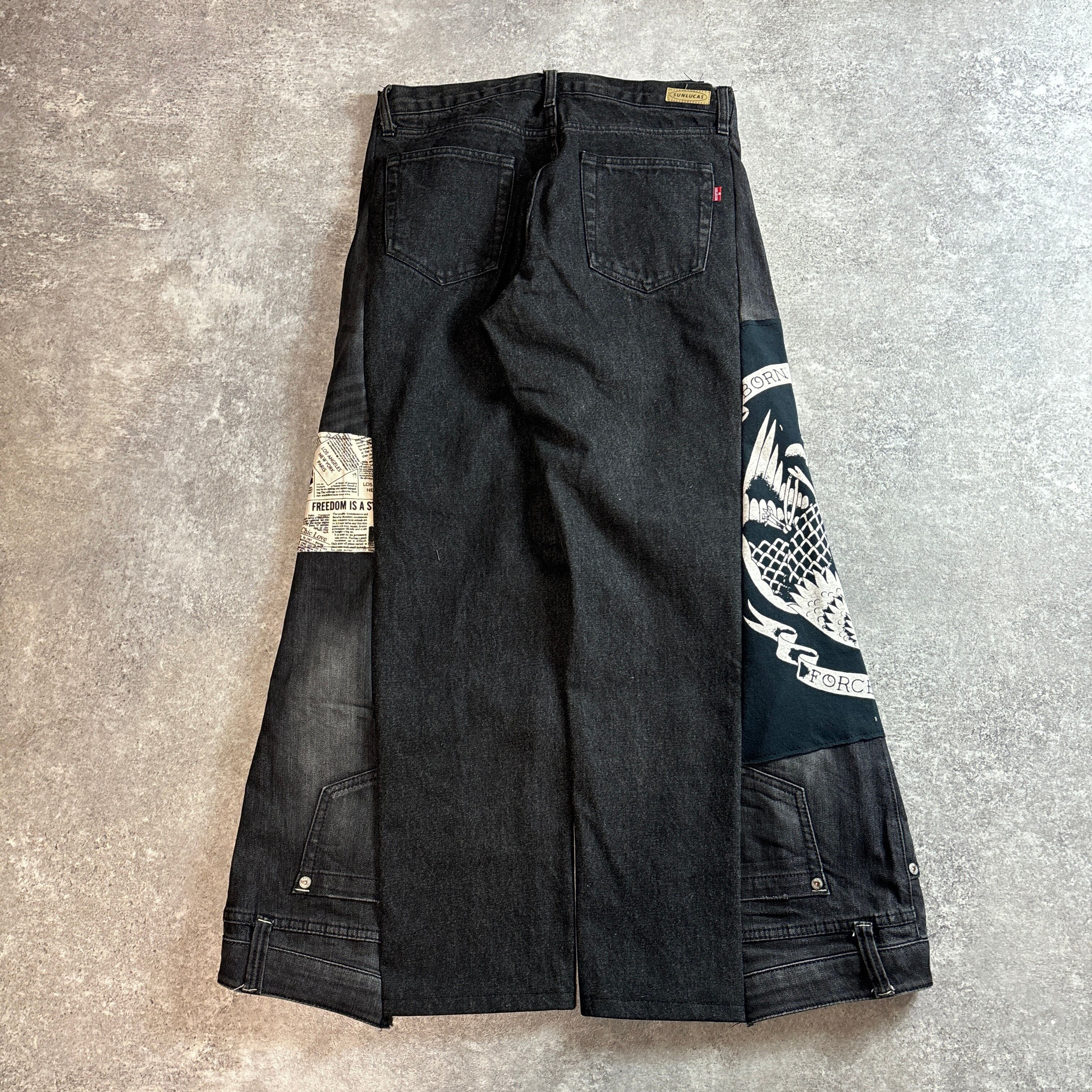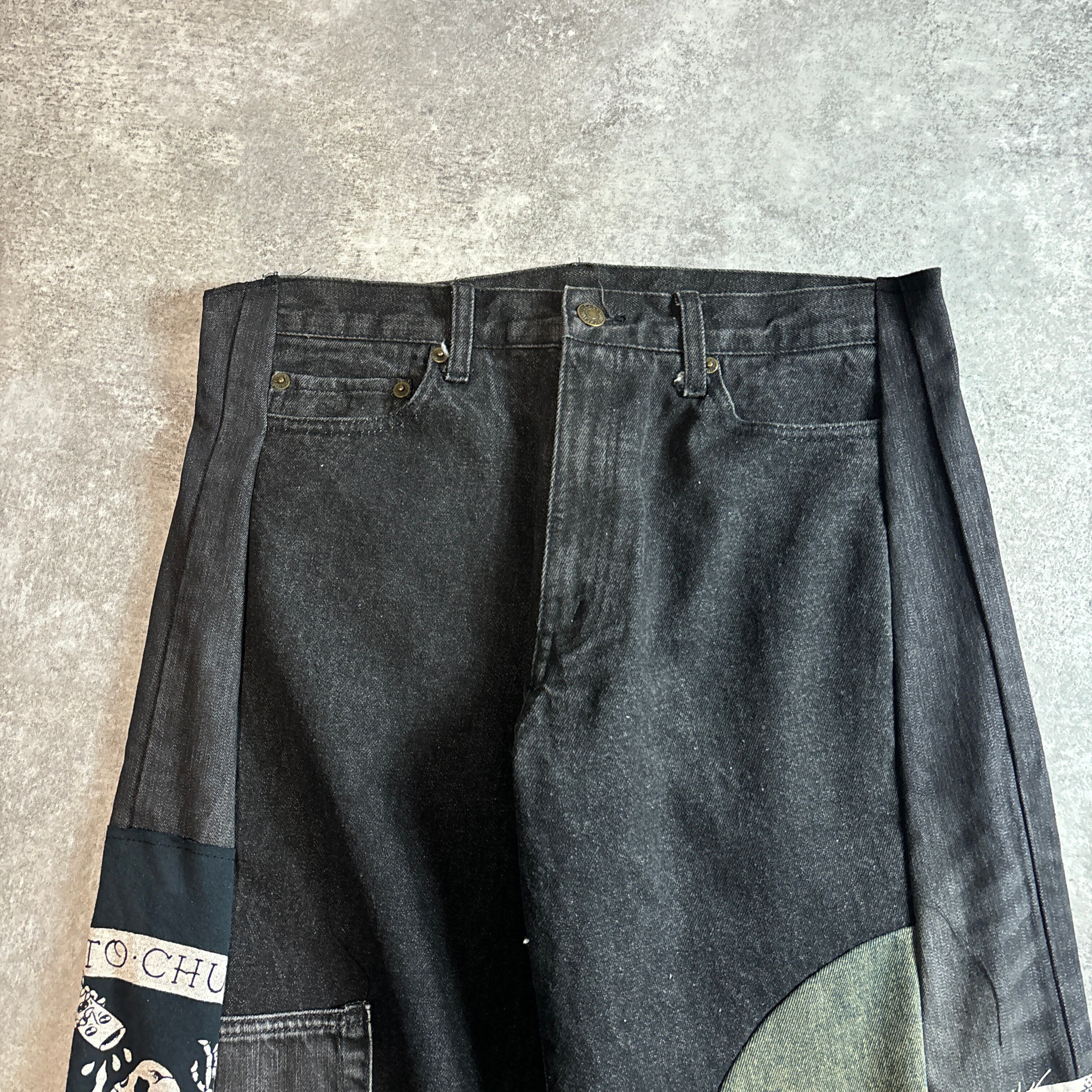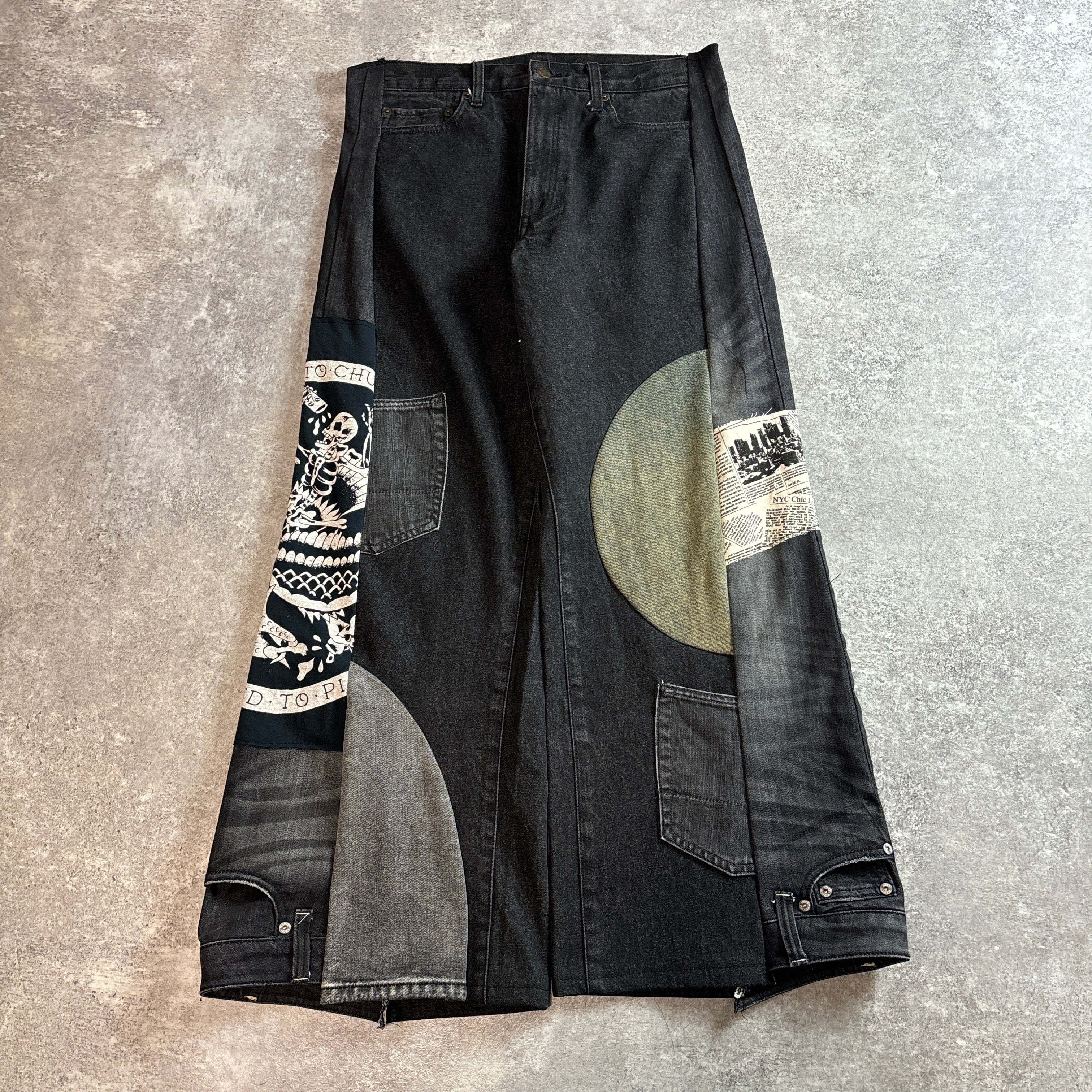 ブラック再構築リメイクワイドデニム グラフィック切替 一点物 vol.126