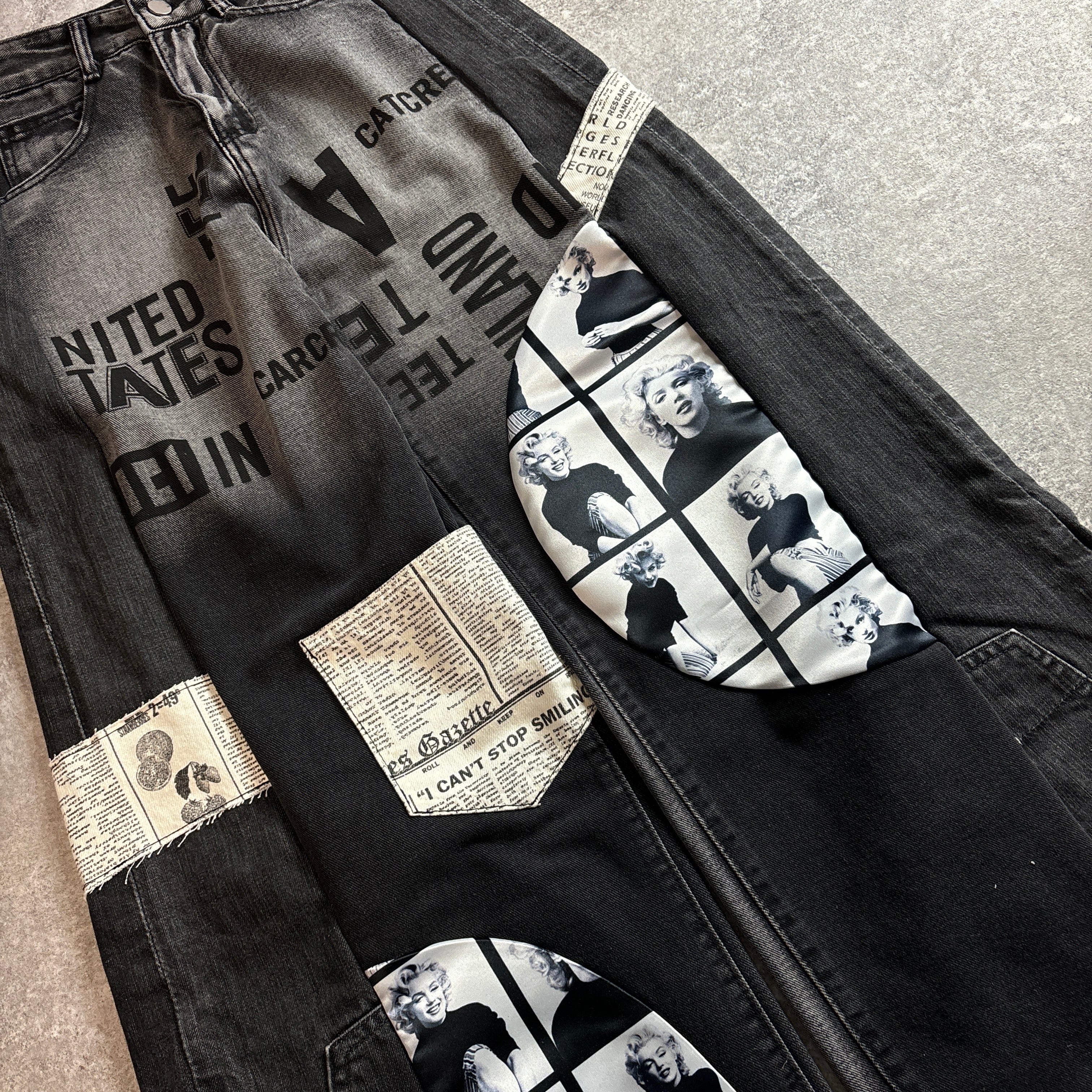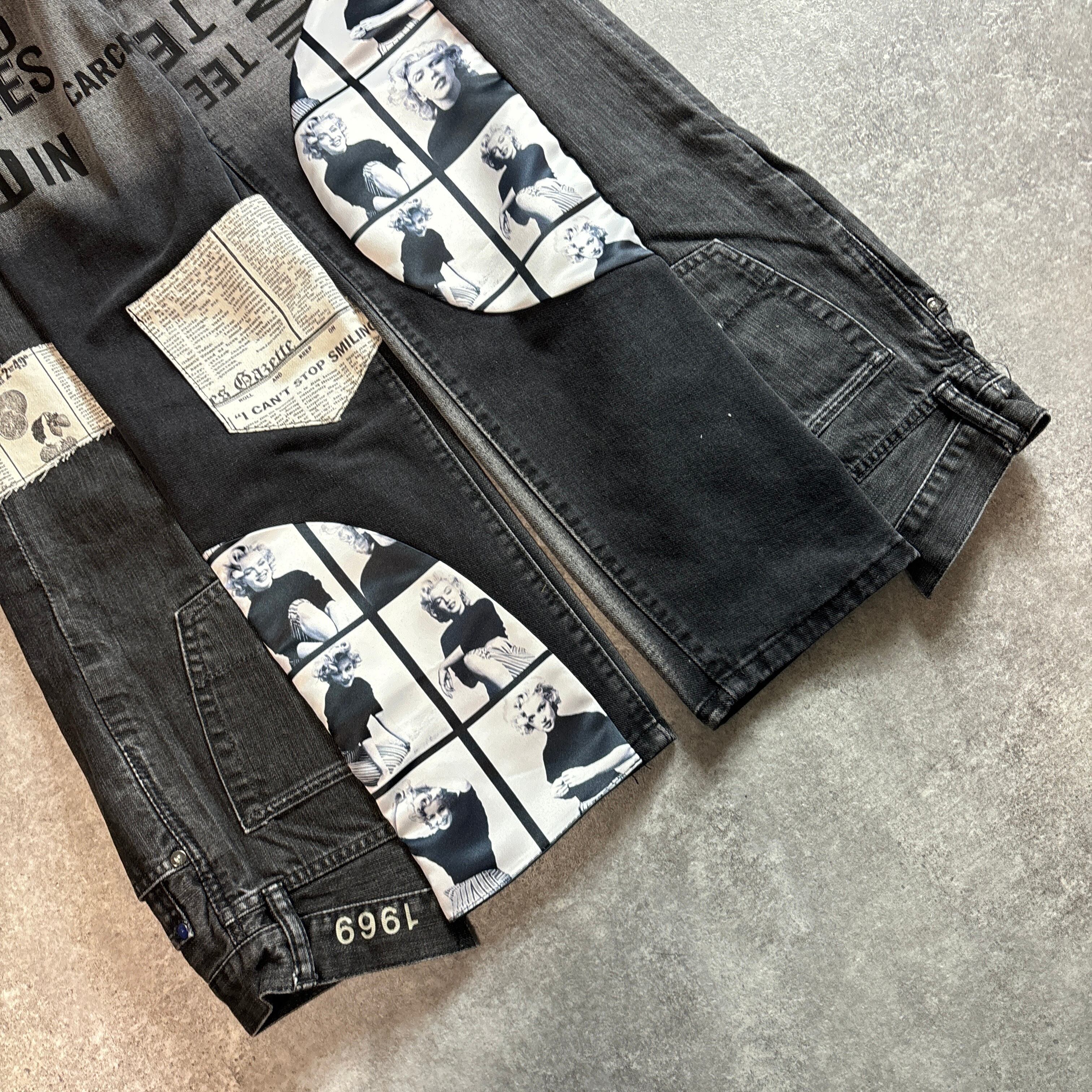 ブラックデニム再構築 グラフィックドッキング ワイドパンツ vol.127
