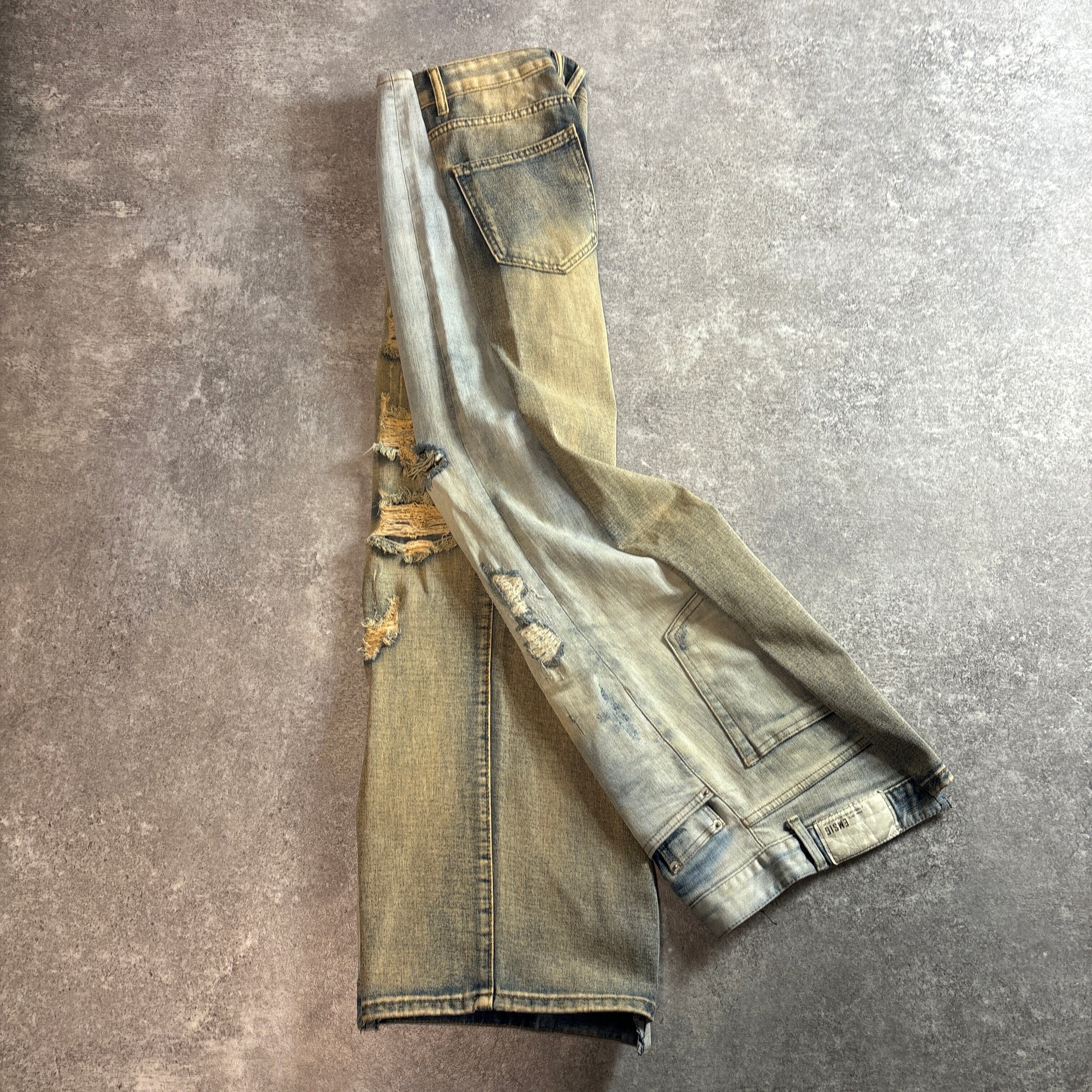 全体にブリーチ加工を施し、ハードなダメージを加えたヴィンテージ感のある仕上がり。