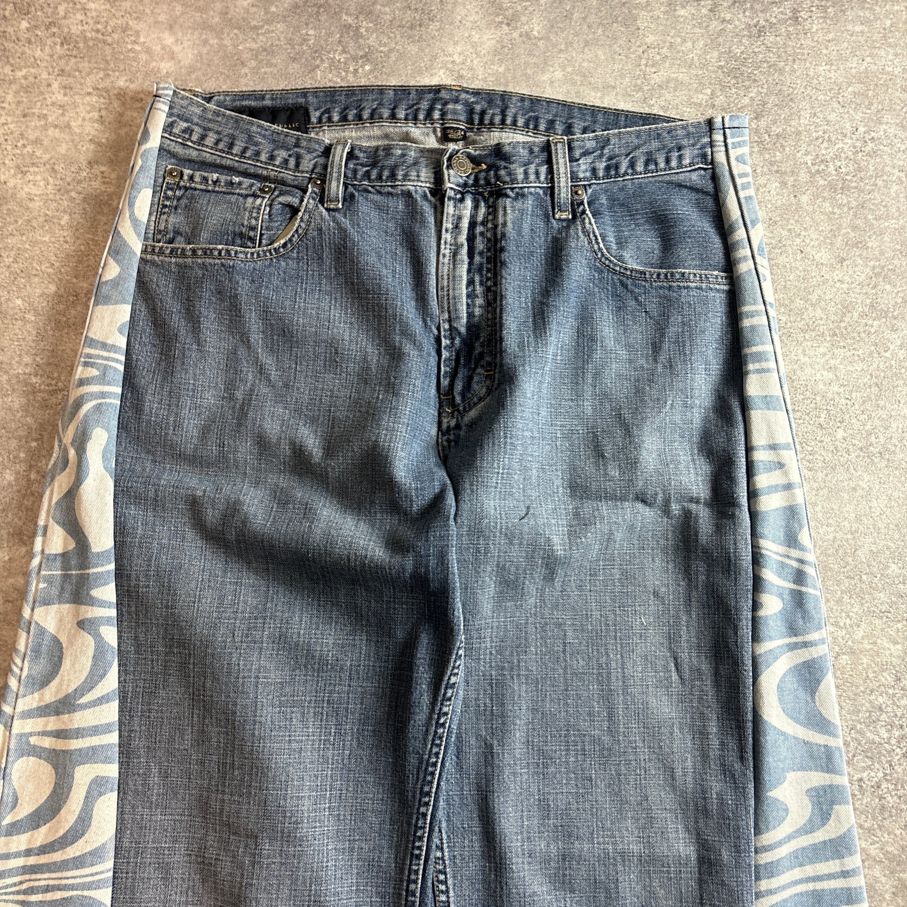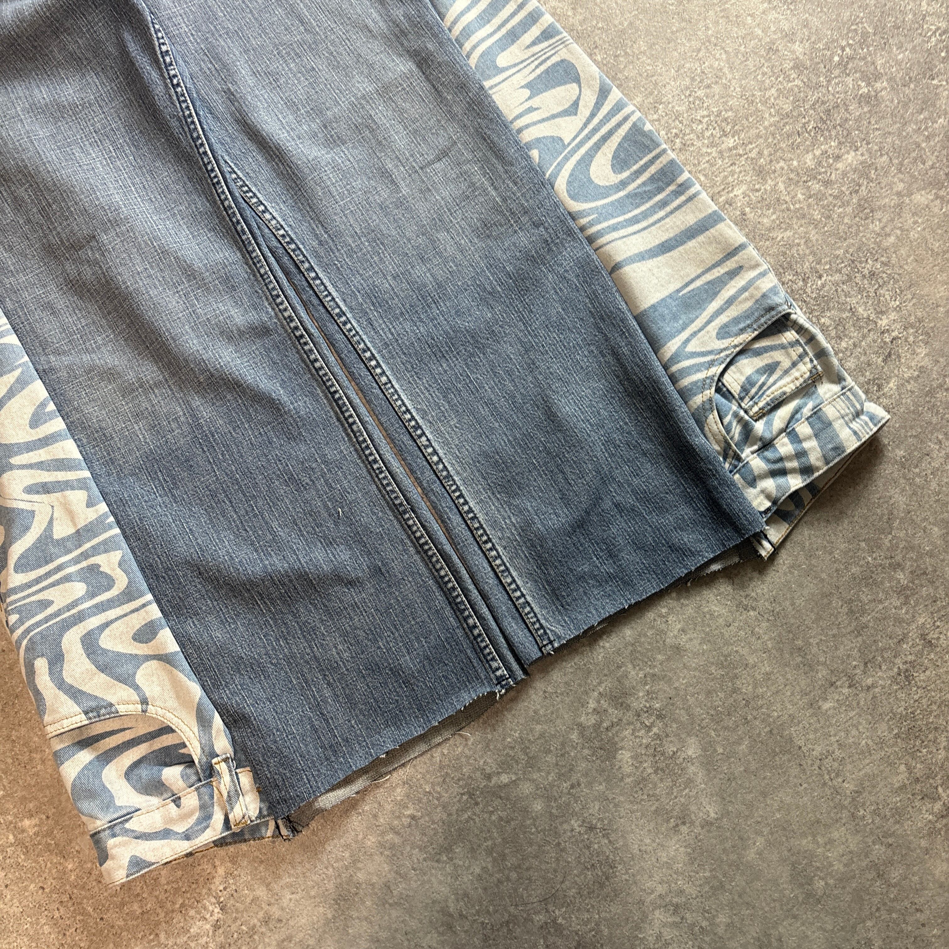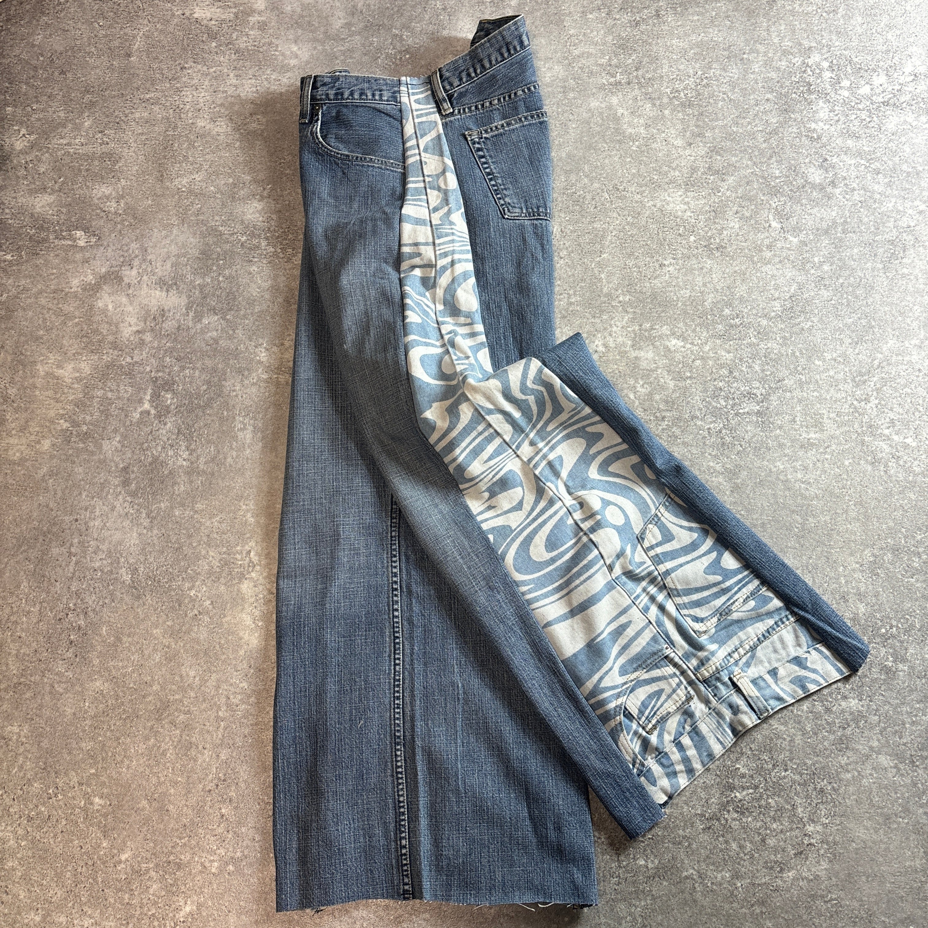 リメイクデニム ワイドパンツ サイド総柄 切替 フレア vol.141