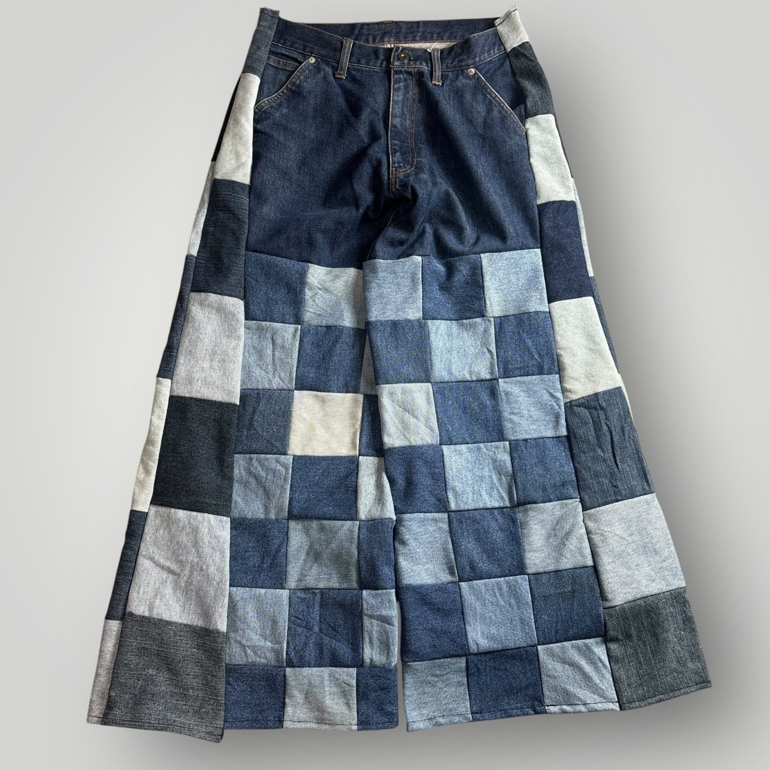 パッチワークデザインのリメイクデニムパンツです。