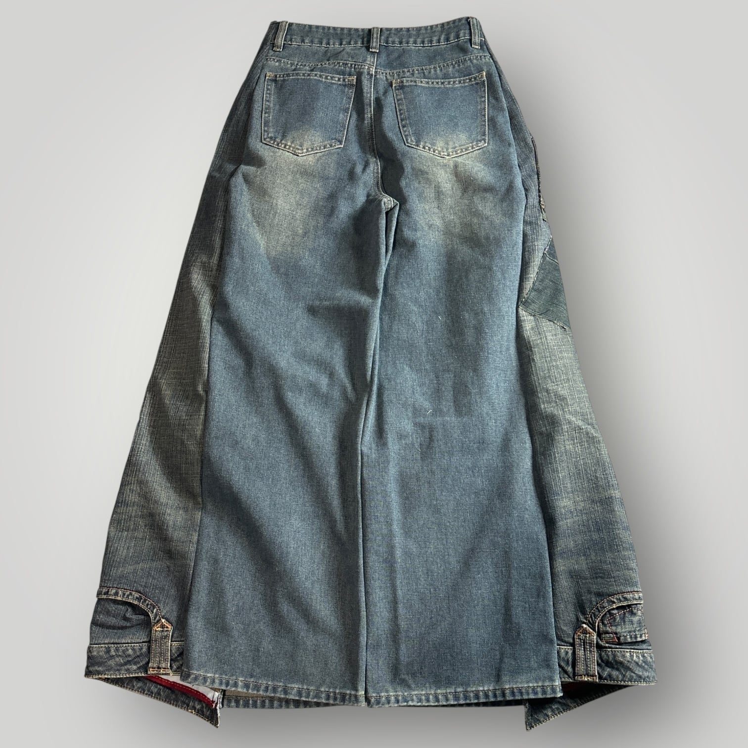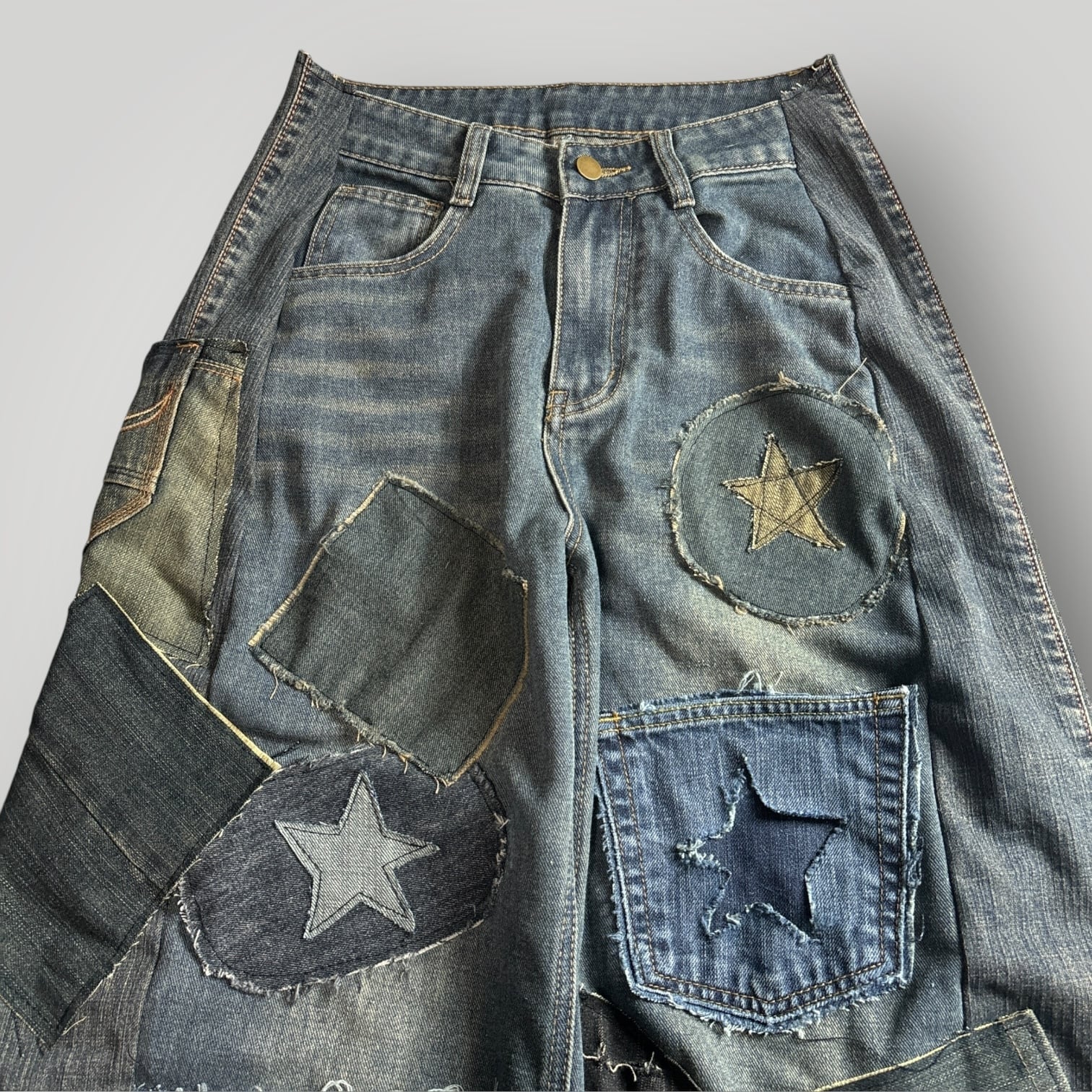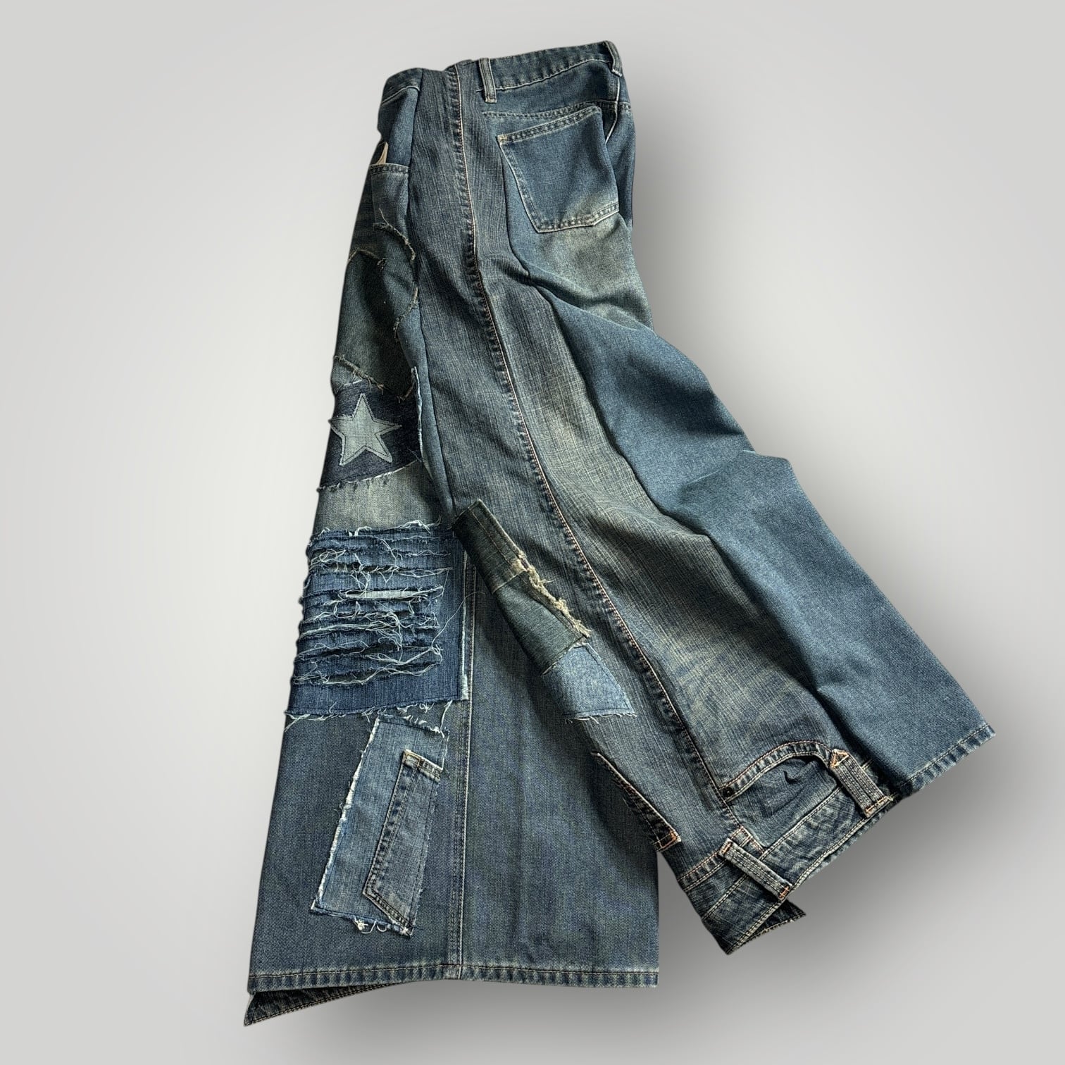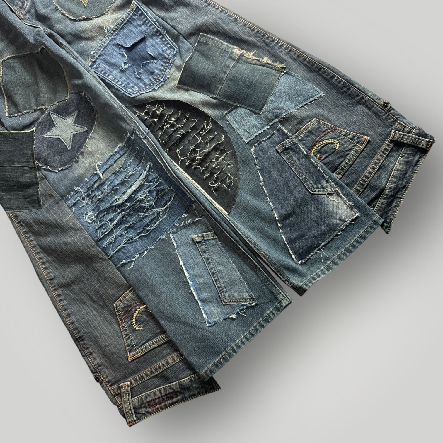 パッチデザインのリメイクデニムパンツです。