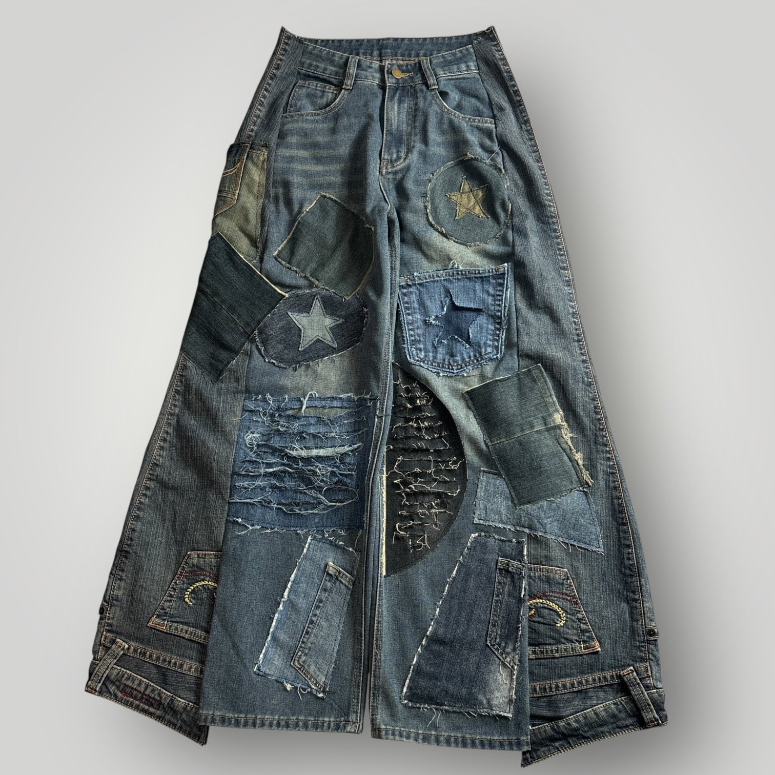 リメイクデニム パッチワーク ダメージデザイン ワイドパンツ vol.203