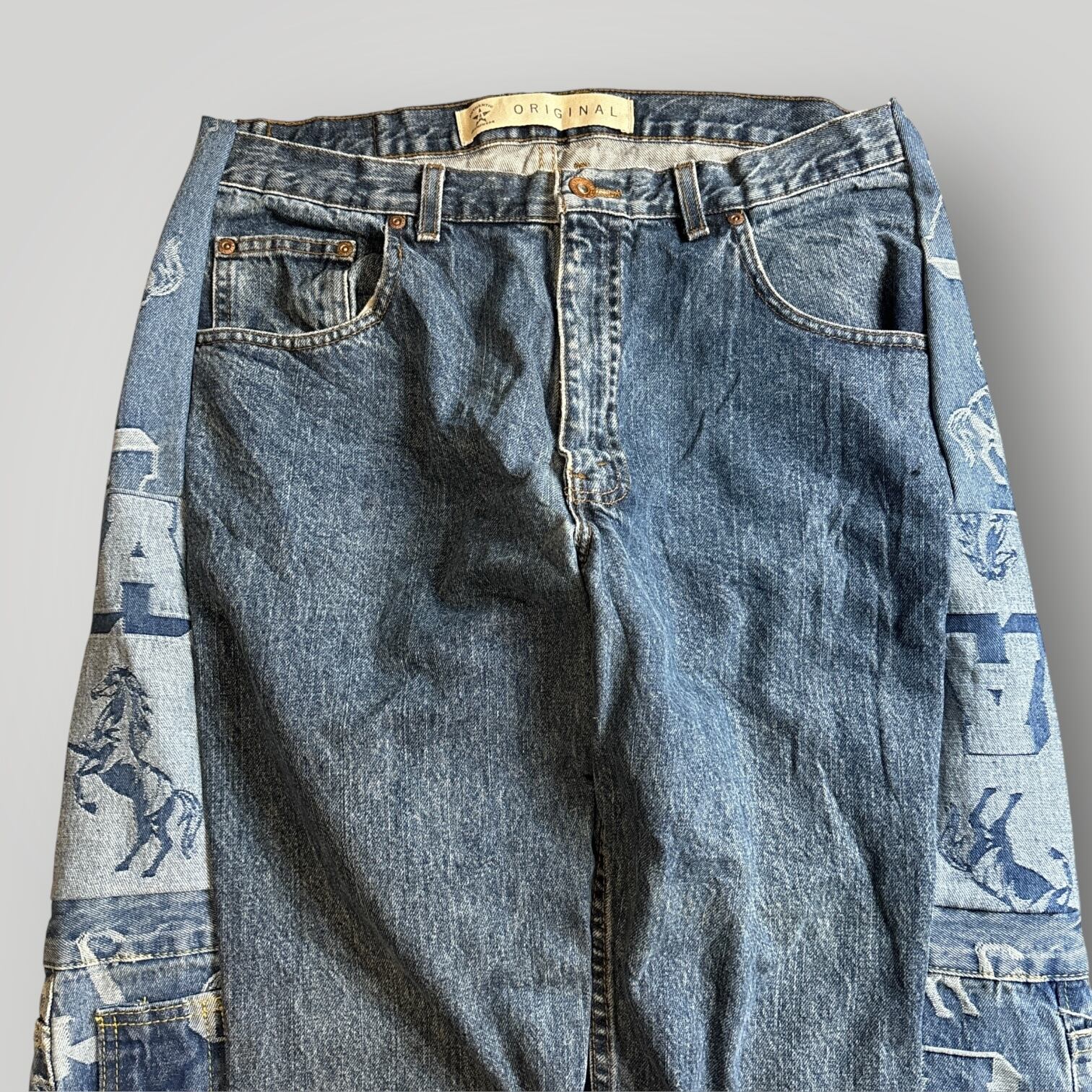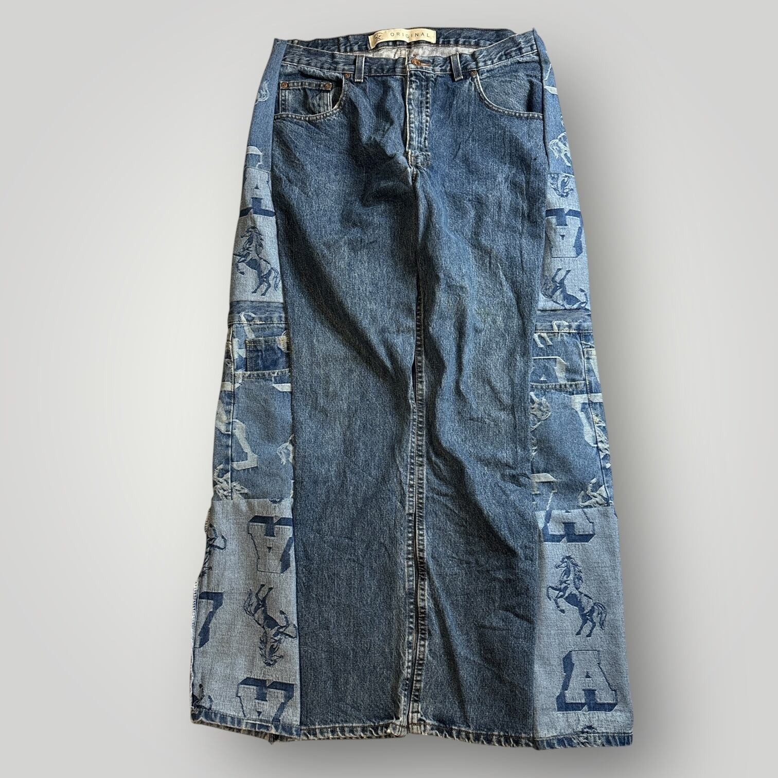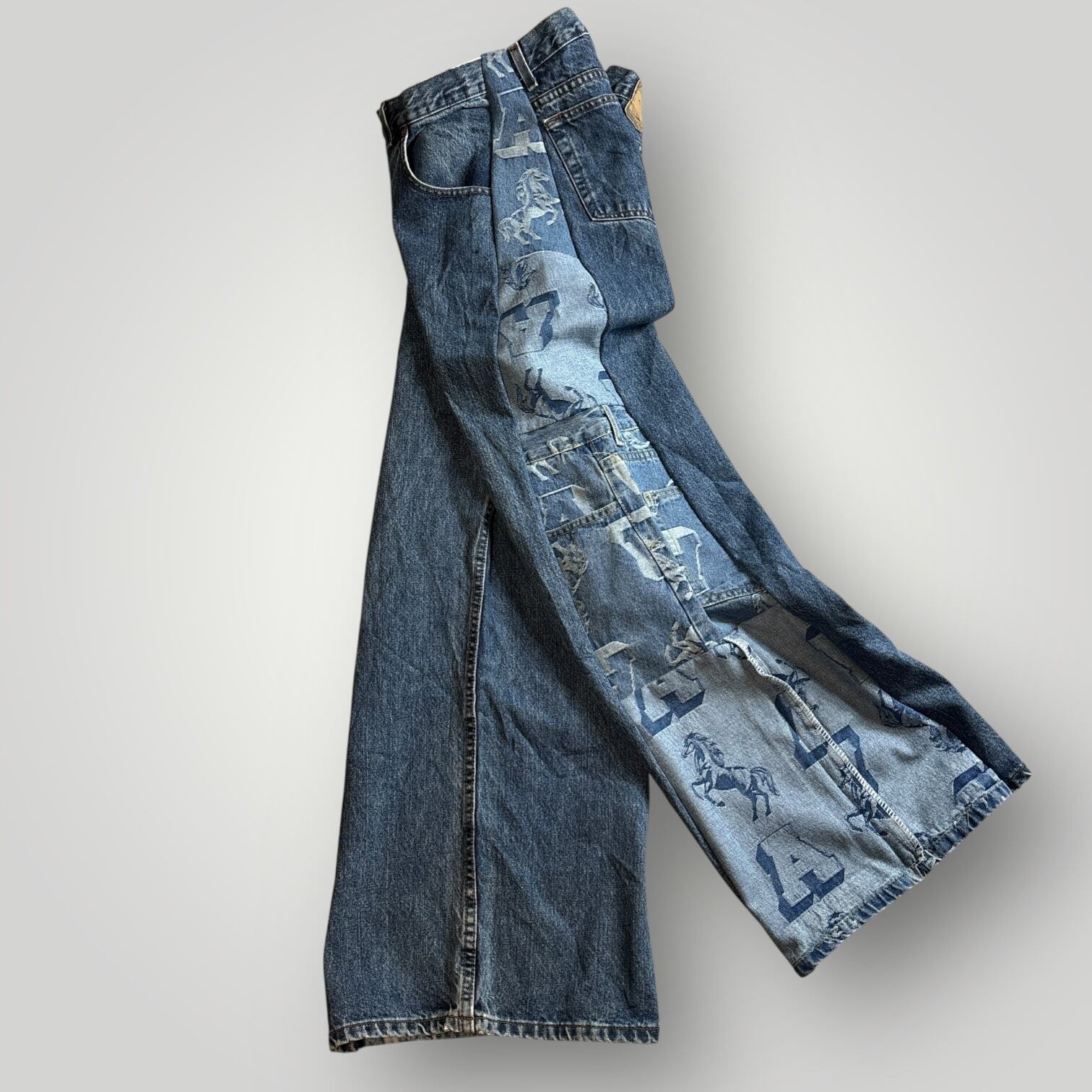 リメイクパンツ リメイクデニム 切替 馬柄 ワイドパンツ 古着 vol.223