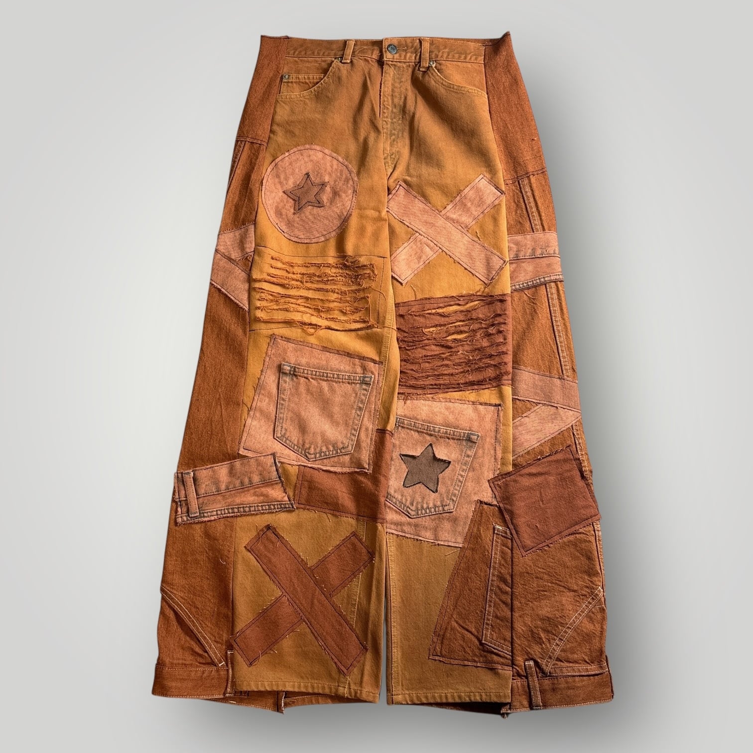 リメイクパンツ ブラウン パッチワーク クラッシュ カオス vol.222