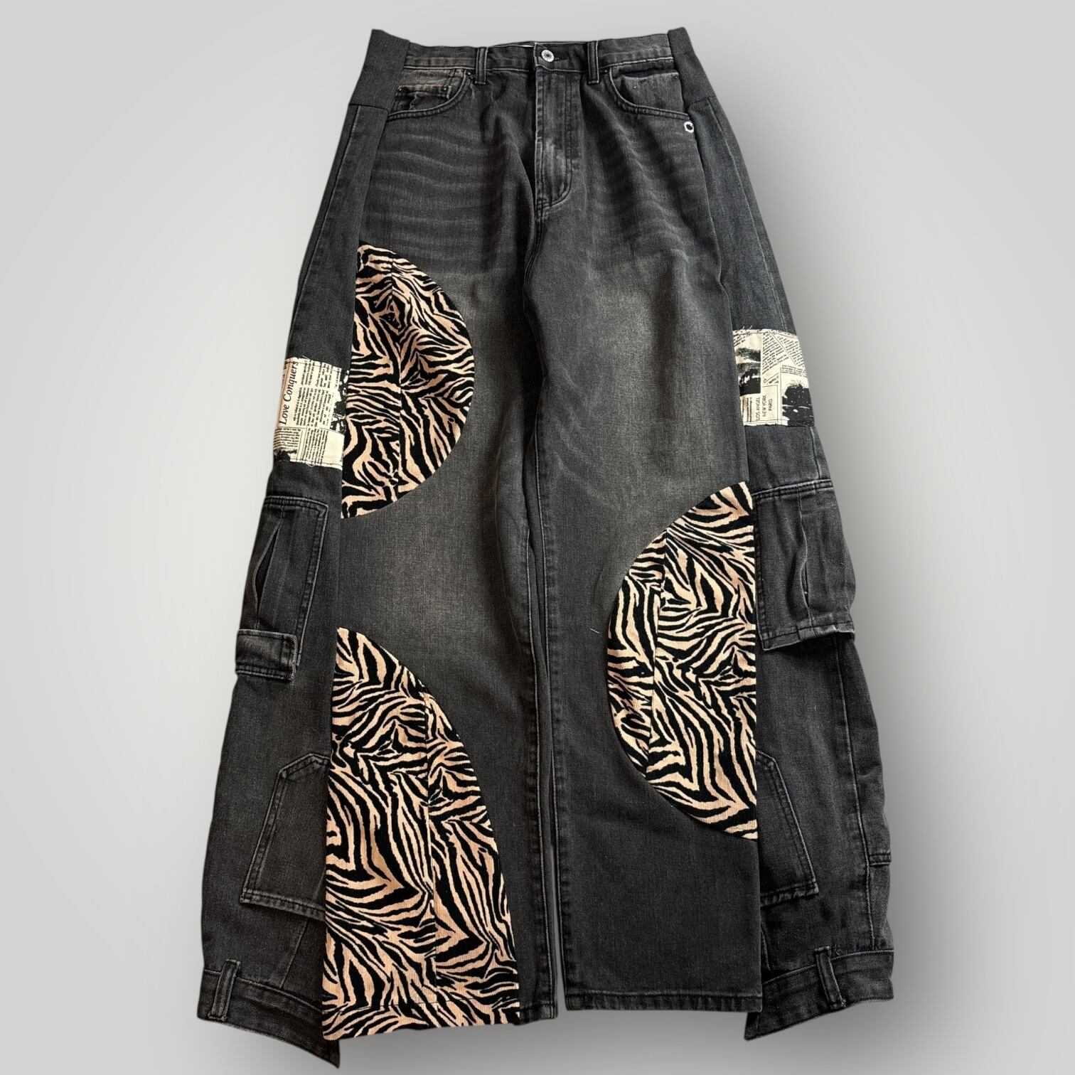 リメイクデニム ゼブラ柄 切替 カーゴ ワイドパンツ vol.221
