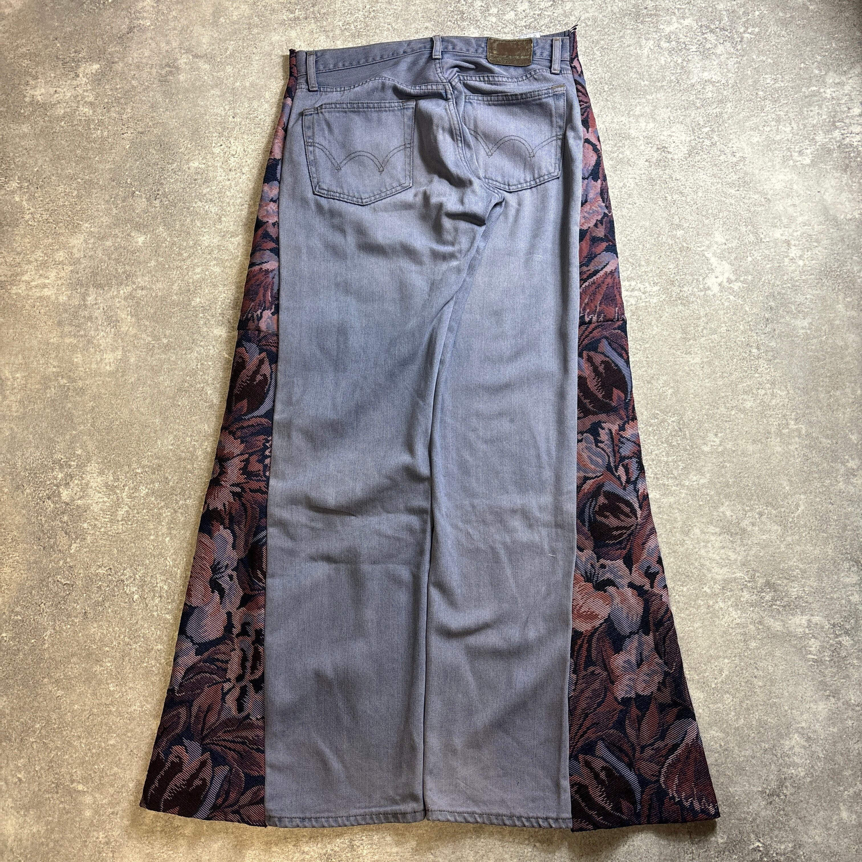 リメイクパンツ 再構築 花柄 パッチワーク おしゃれ ワイド