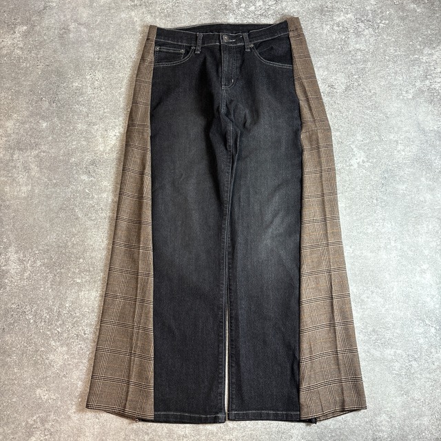 フォローしていただくと値下げ可能になります! ☆リピーターの方さらに¥200値引き!☆ ☆まとめ買いについて☆ まとめ買いでフォロー割+10%off、3点まとめ買いでフォロー割+20%off、4点からは要相談で! ◼️商品説明◼️ ブラックデニムとチェック柄スラックス生地をドッキングしたリメイクパンツ。クラシックな雰囲気とストリート感を併せ持つデザインで、きれいめにもカジュアルにも対応。フレアシルエットが脚を綺麗に見せてくれます。 ◼️カラー◼️ ブラック ◼️サイズ◼️ ウエスト 39 総丈 95 股上 31.5 股下 70 ワタリ 31 裾周り 31 ◼️状態◼️ 目立った傷や汚れはありません。 ◼️備考◼️ 洗濯の際は裏返しにし、ネットに入れ、ソフト洗いをオススメします。 脱水は、長すぎるとシワになり、ほつれや縮む原因になりますので、短い時間するのがベストです。 中古品ということをご理解ください。 何かあれば気軽にお尋ねください。 詳しくはプロフィールを見てください。