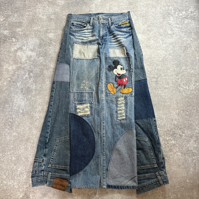 ◼️商品説明◼️ ミッキーマウスデザインのリメイクデニムです!! 複数のジーンズを再構築し、ミッキーのワッペンや大胆なパッチワーク、ダメージ加工を施した、こだわりの詰まった一着です。 後ろにはWranglerなどのブランドジーンズを組み合わせており、360度どこから見ても目を惹くデザインに仕上がっています。デニム特有の風合いとリメイクならではの個性が魅力です! ◼️カラー◼️ ブルー系 ◼️サイズ◼️ ウエスト 38 総丈 98 股上 27 股下 75 ワタリ 29 裾周り 34.5 ◼️状態◼️ 目立った傷や汚れはありません。 ◼️備考◼️ 洗濯の際は裏返しにし、ネットに入れ、ソフト洗いをオススメします。 脱水は、長すぎるとシワになり、ほつれや縮む原因になりますので、短い時間するのがベストです。 中古品ということをご理解ください。 何かあれば気軽にお尋ねください。